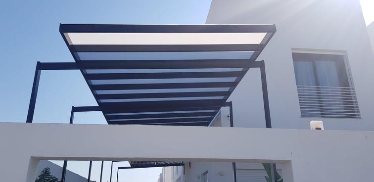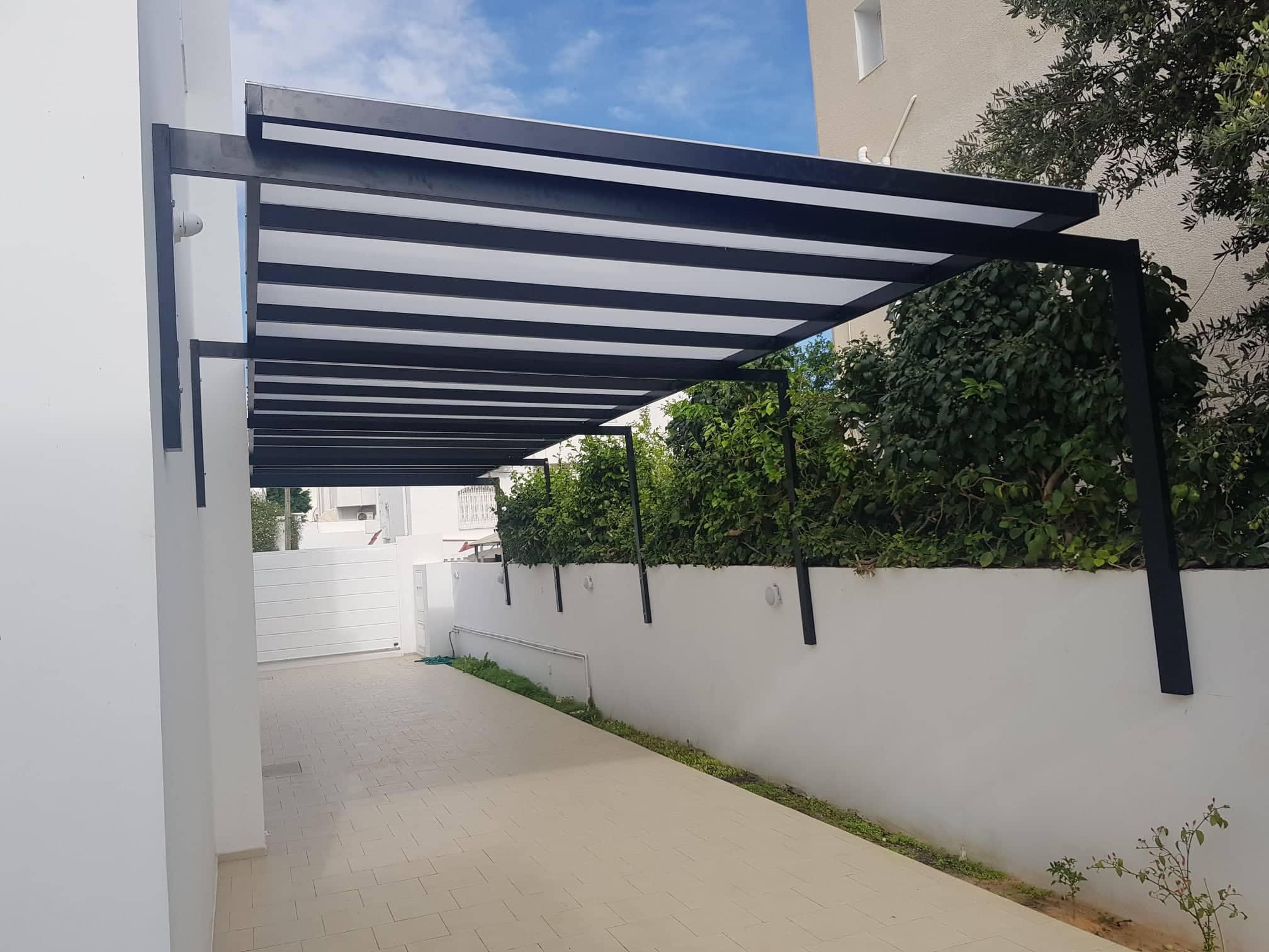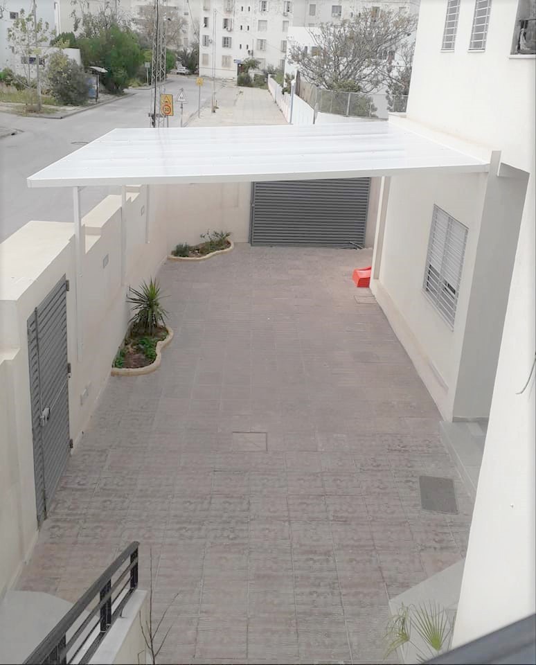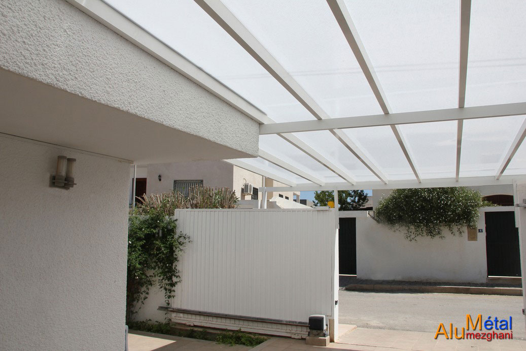 L'esthétisme passe aussi par un toit symétrique ou asymétrique, en Polycarbonate d'épaisseur 6 ou 10 mm anti-UV, transparent, fumé, qui renforce le design haut de gamme de ce produit.