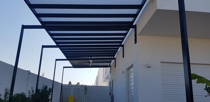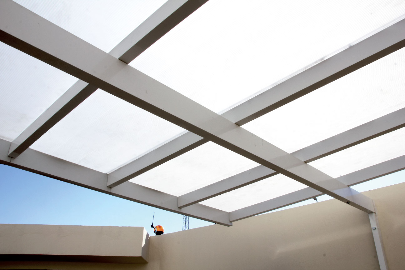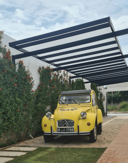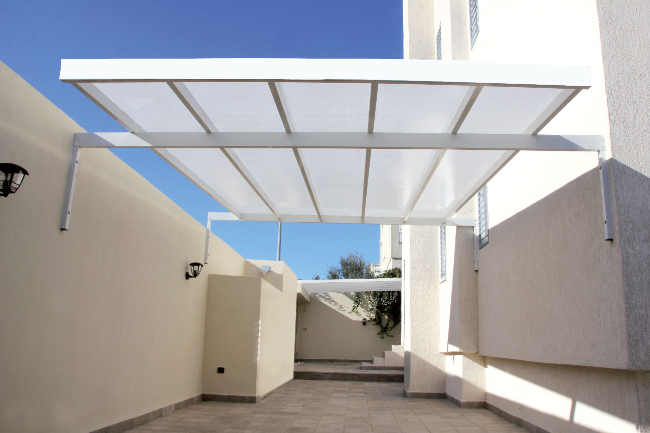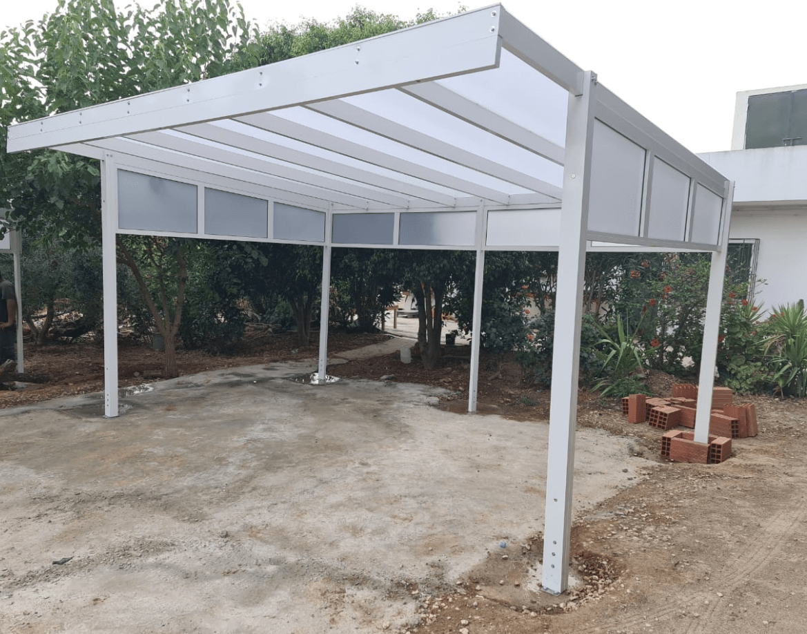 L'esthétisme passe aussi par un toit symétrique ou asymétrique, en Polycarbonate d'épaisseur 6 ou 10 mm anti-UV, transparent, fumé, qui renforce le design haut de gamme de ce produit.